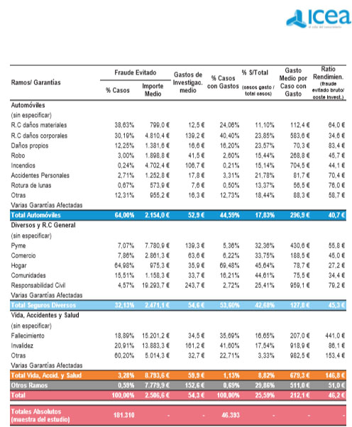 El rendimiento sobre la inversión en la lucha contra el fraude es una cuestión que preocupa al seguro. El informe de ICEA indica que el ratio de rendimiento entre el fraude evitado y el coste investigado asciende a los 46,2 euros.